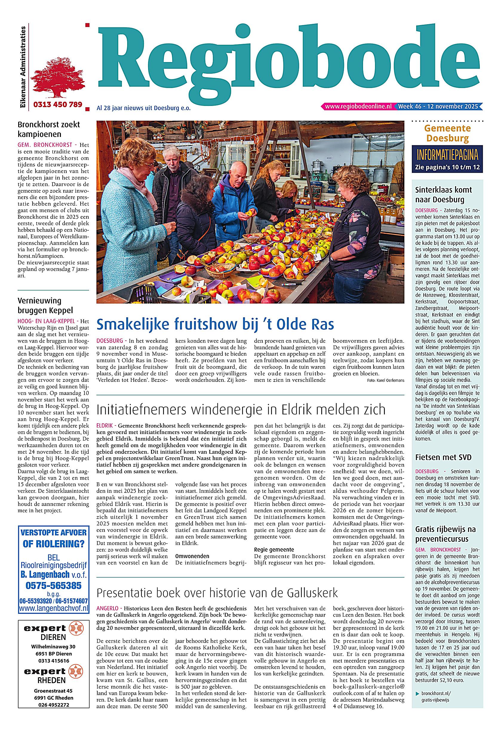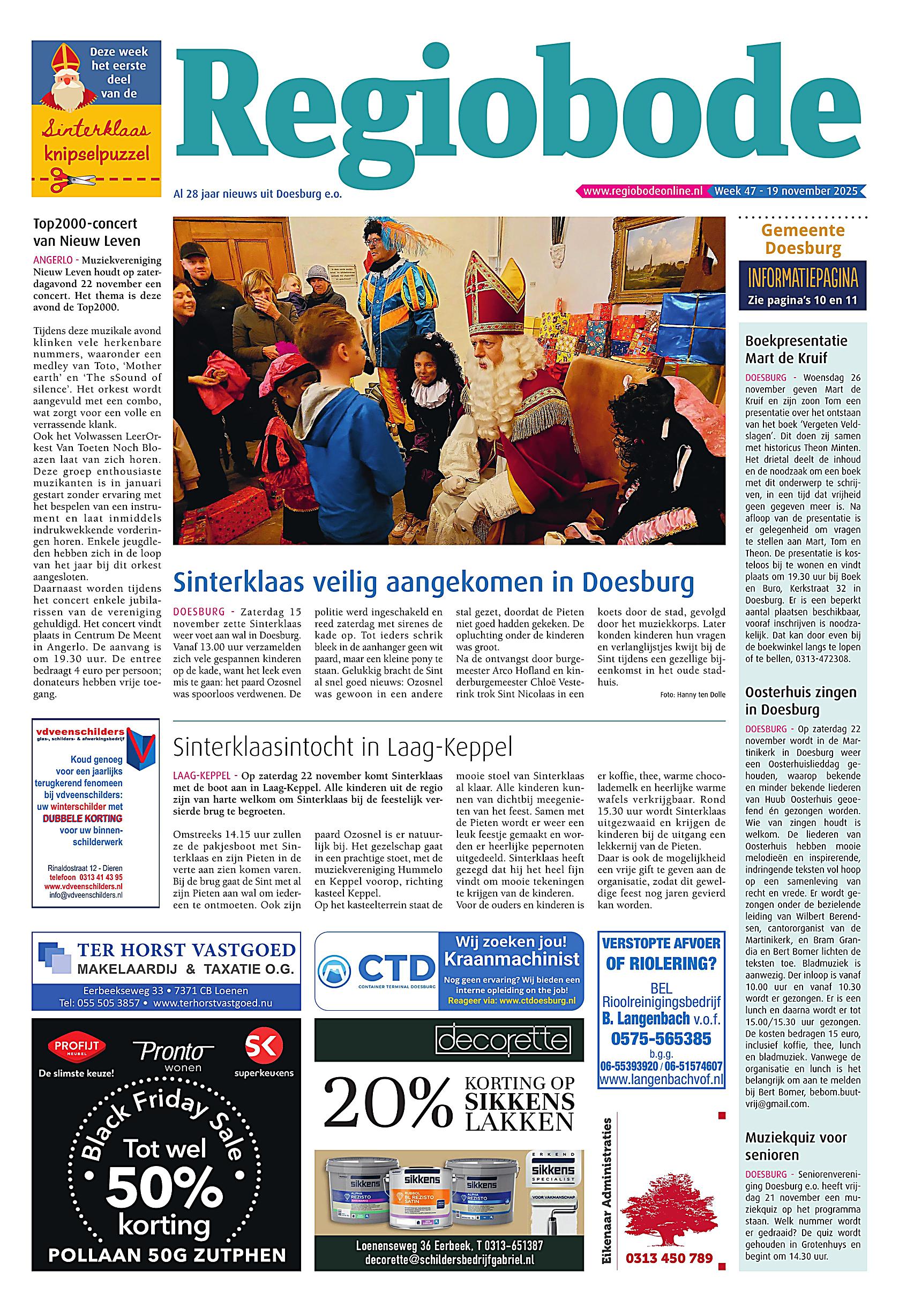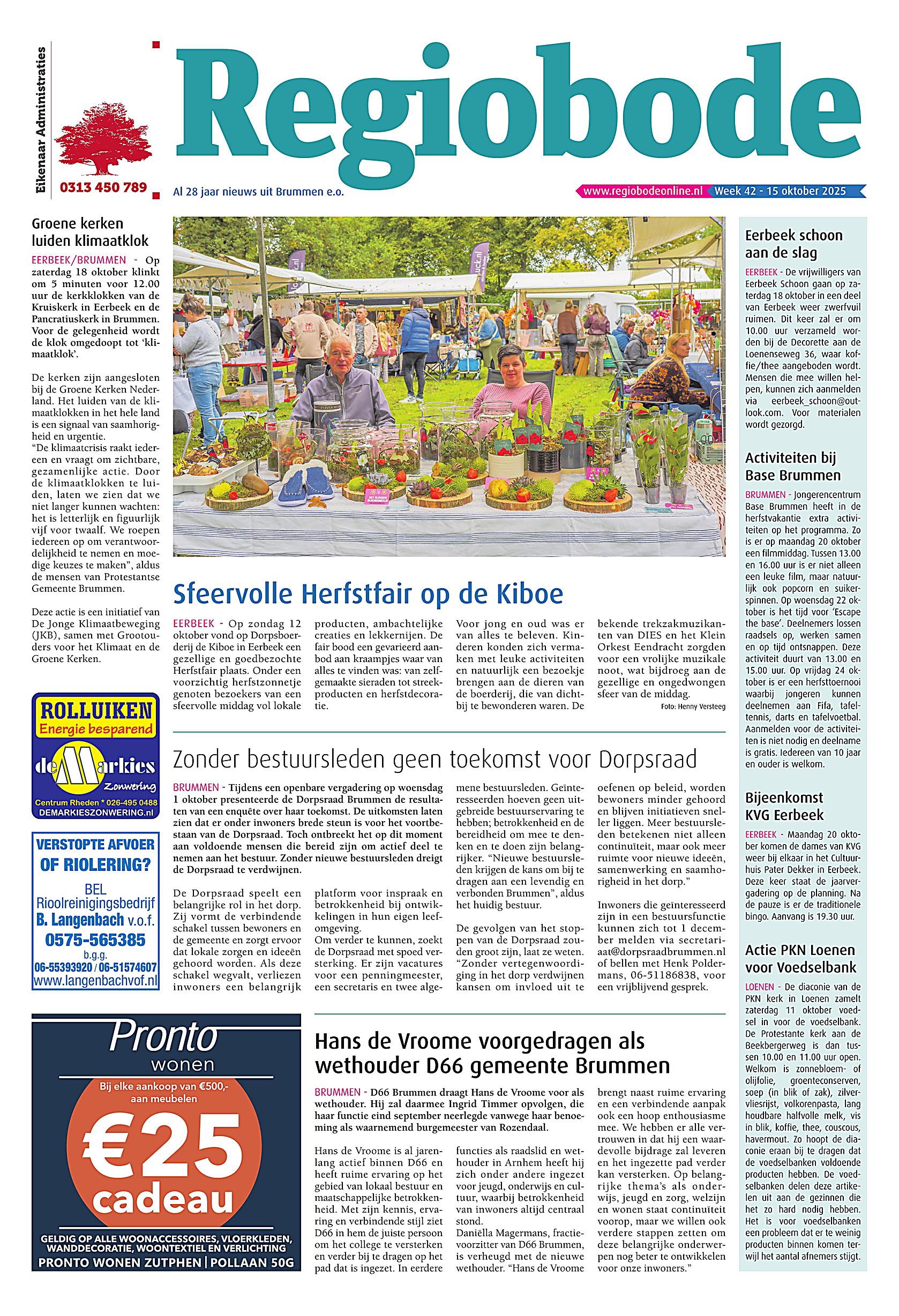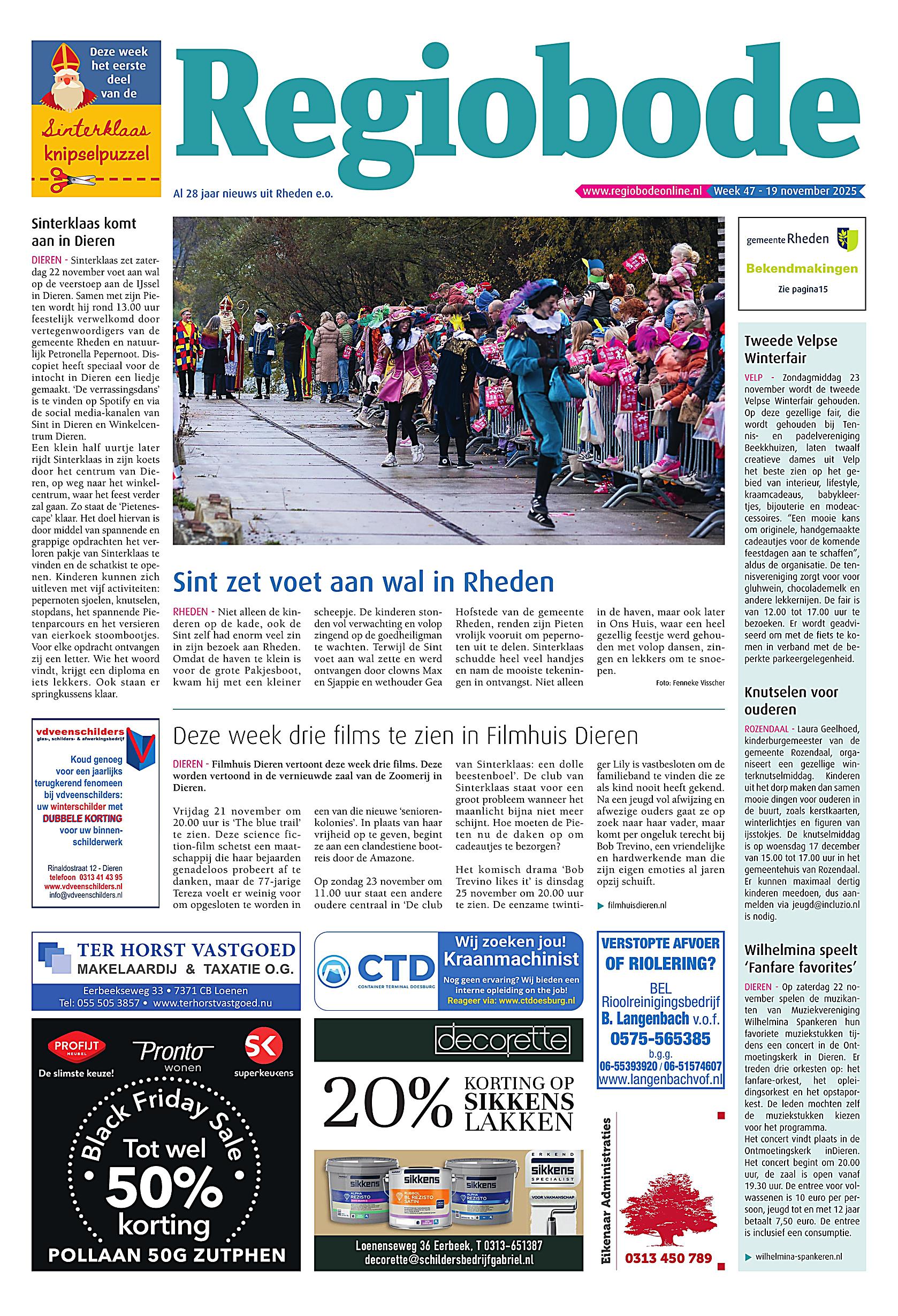 Welkom op het krantenarchief van Regiobode Beheer. Op deze plek zijn onze laatste uitgaven digitaal te lezen. Niet alleen zijn de redactionele bijdragen hier te zien, maar omdat complete uitgaven gedigitaliseerd worden, zijn ook alle advertenties te zien zoals ze in de gedrukte media zijn verschenen.