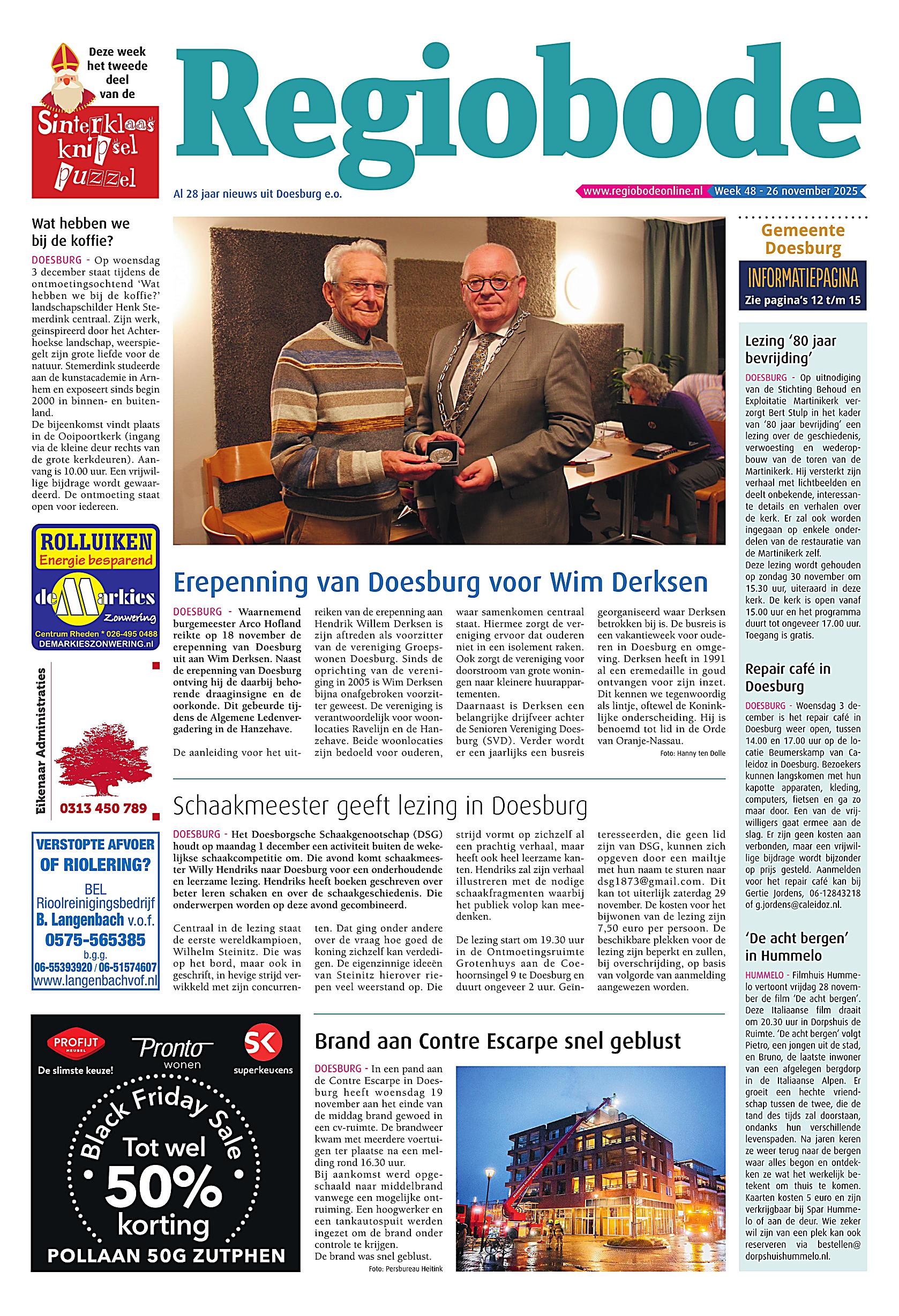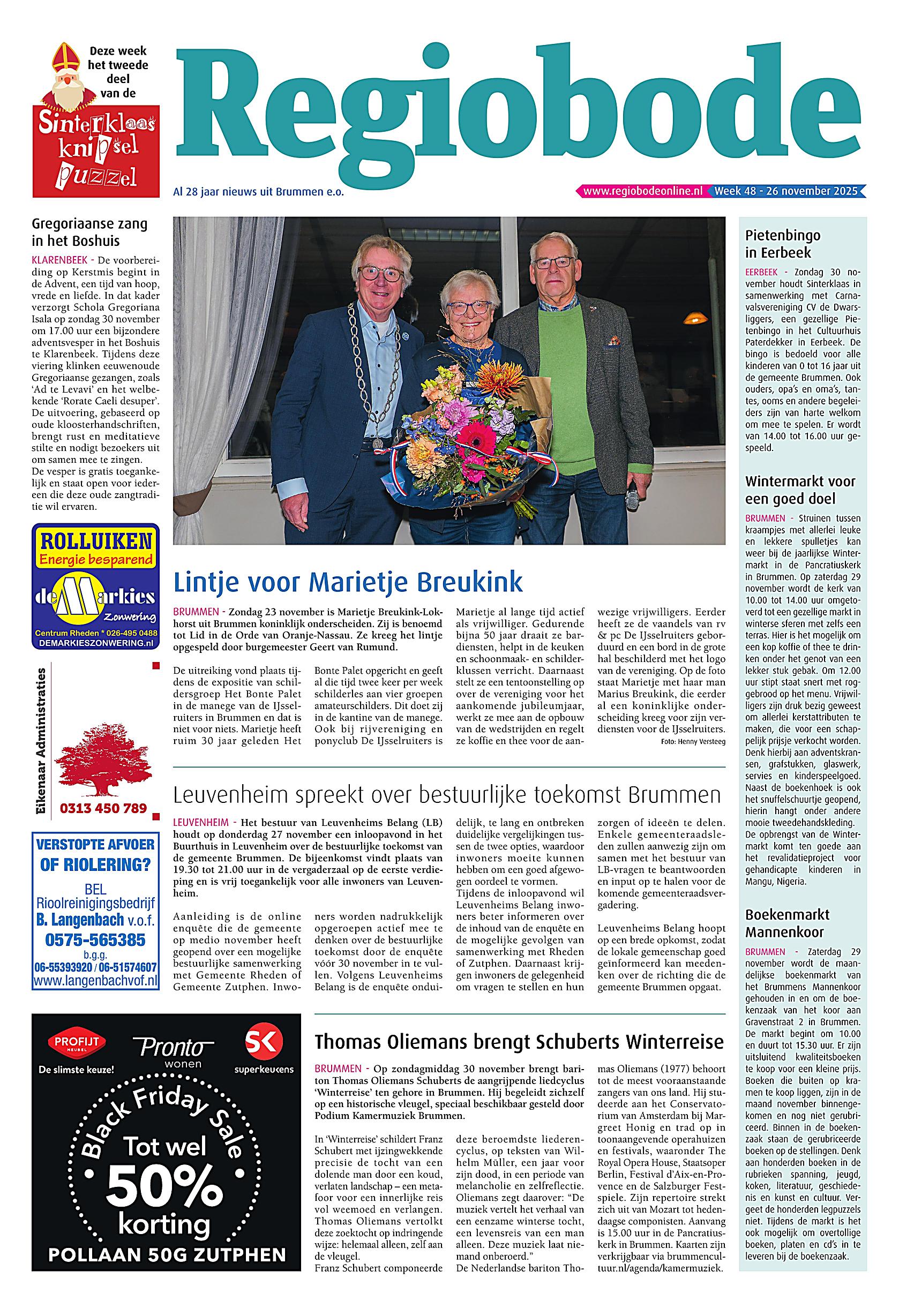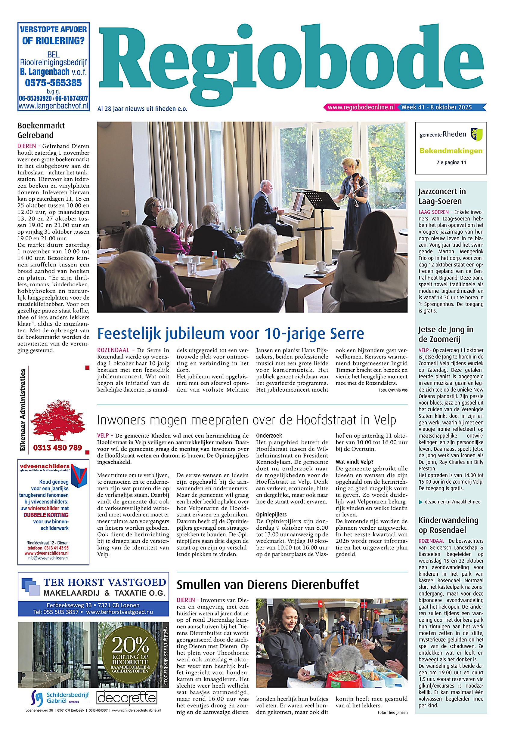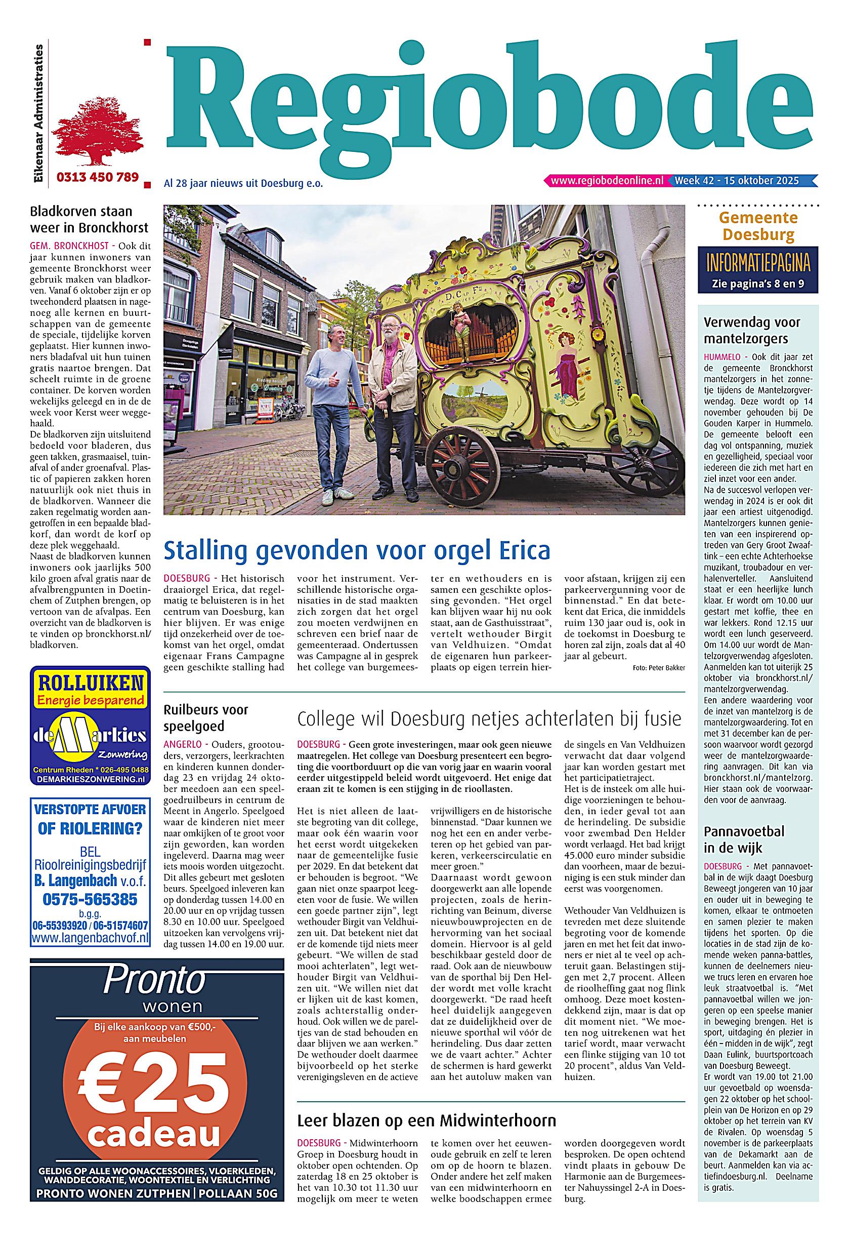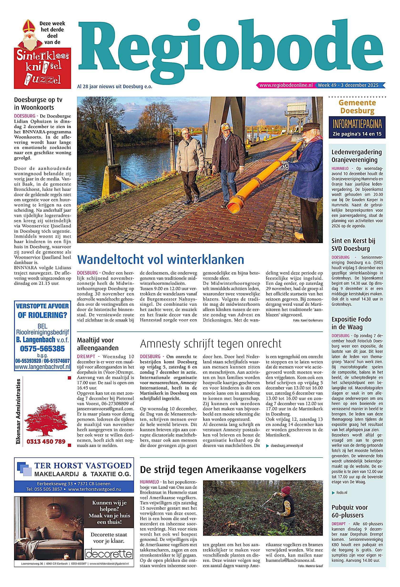 Welkom op het krantenarchief van Regiobode Beheer. Op deze plek zijn onze laatste uitgaven digitaal te lezen. Niet alleen zijn de redactionele bijdragen hier te zien, maar omdat complete uitgaven gedigitaliseerd worden, zijn ook alle advertenties te zien zoals ze in de gedrukte media zijn verschenen.