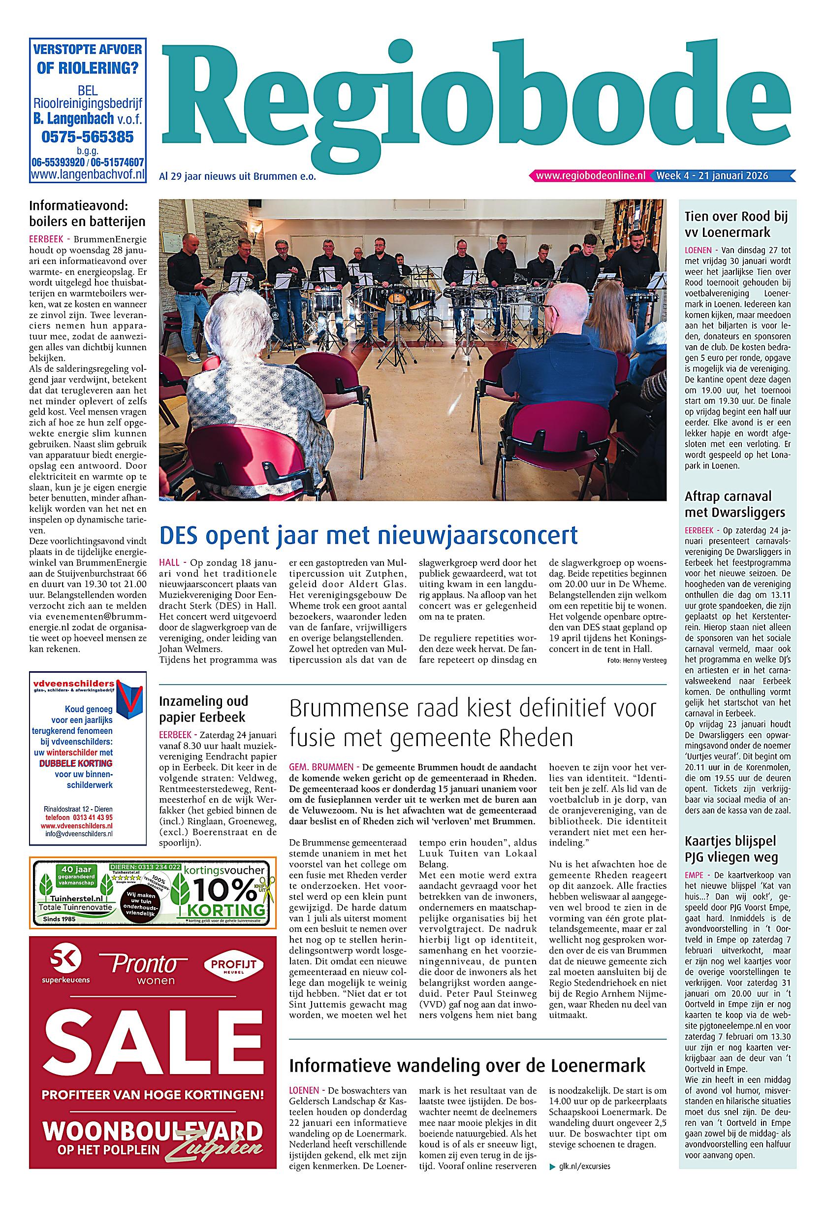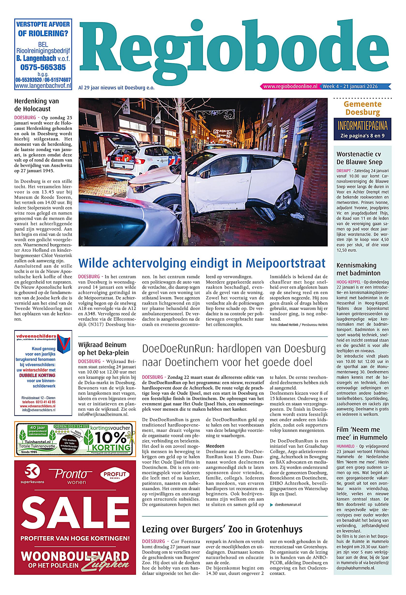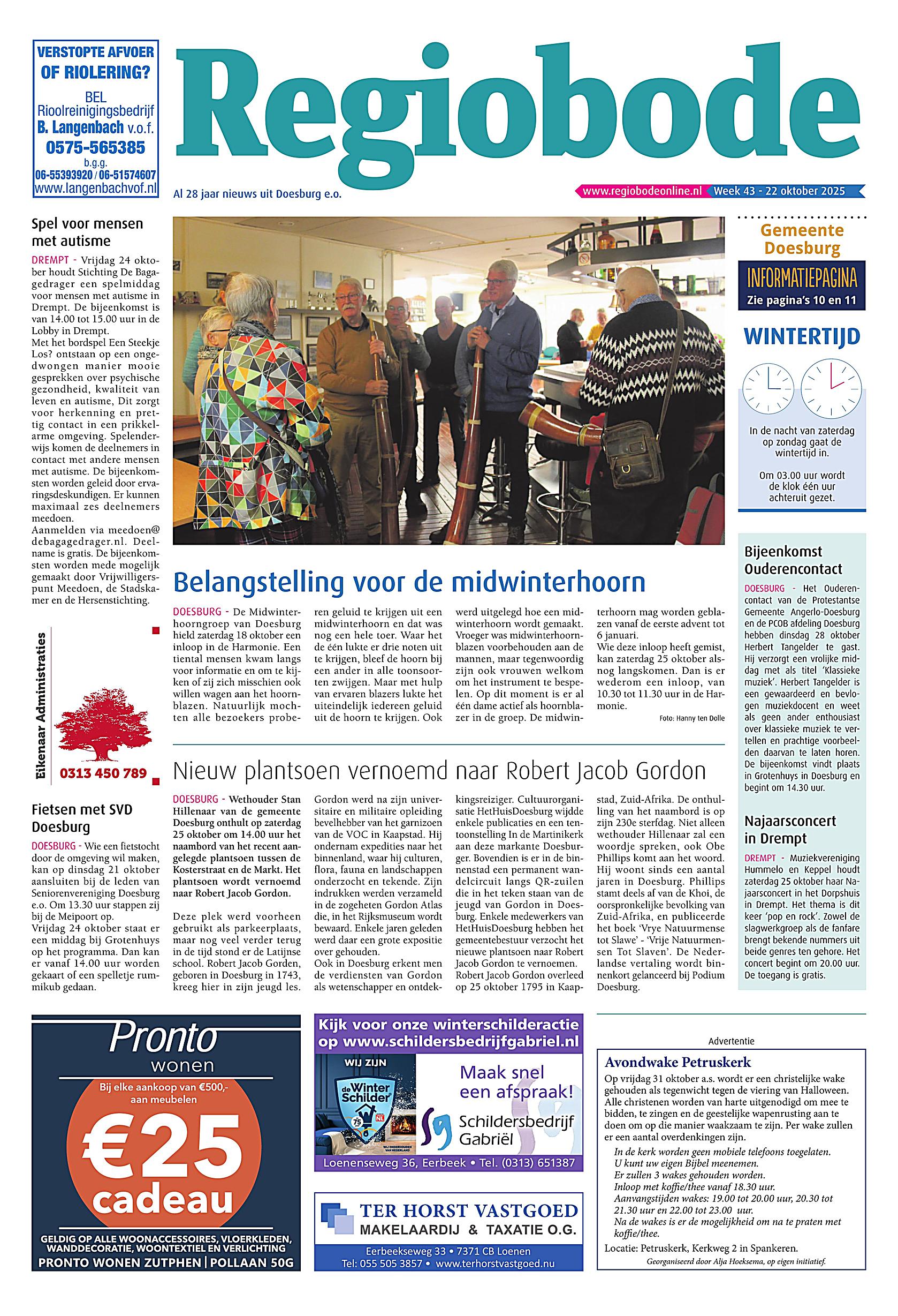 Welkom op het krantenarchief van Regiobode Beheer. Op deze plek zijn onze laatste uitgaven digitaal te lezen. Niet alleen zijn de redactionele bijdragen hier te zien, maar omdat complete uitgaven gedigitaliseerd worden, zijn ook alle advertenties te zien zoals ze in de gedrukte media zijn verschenen.