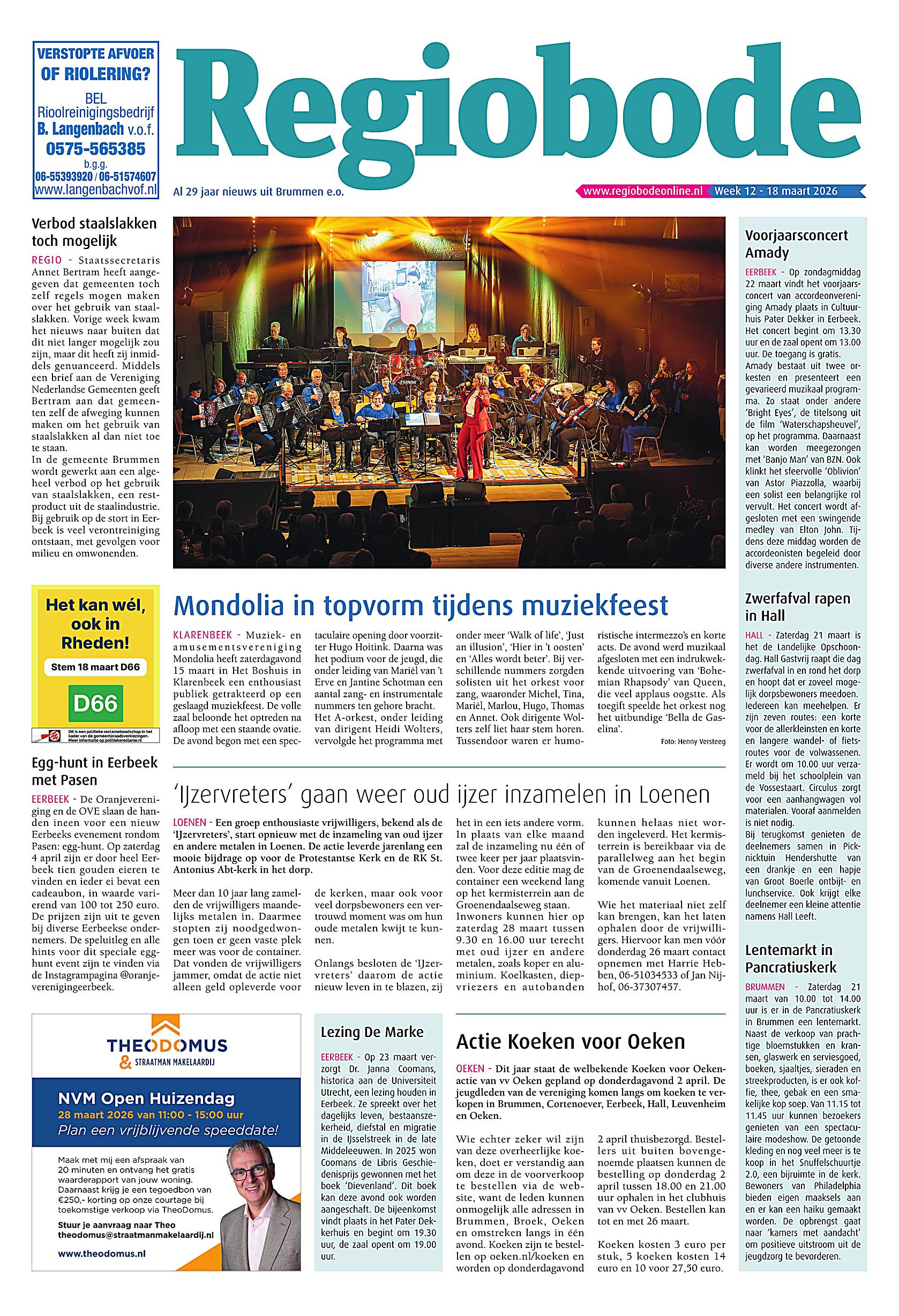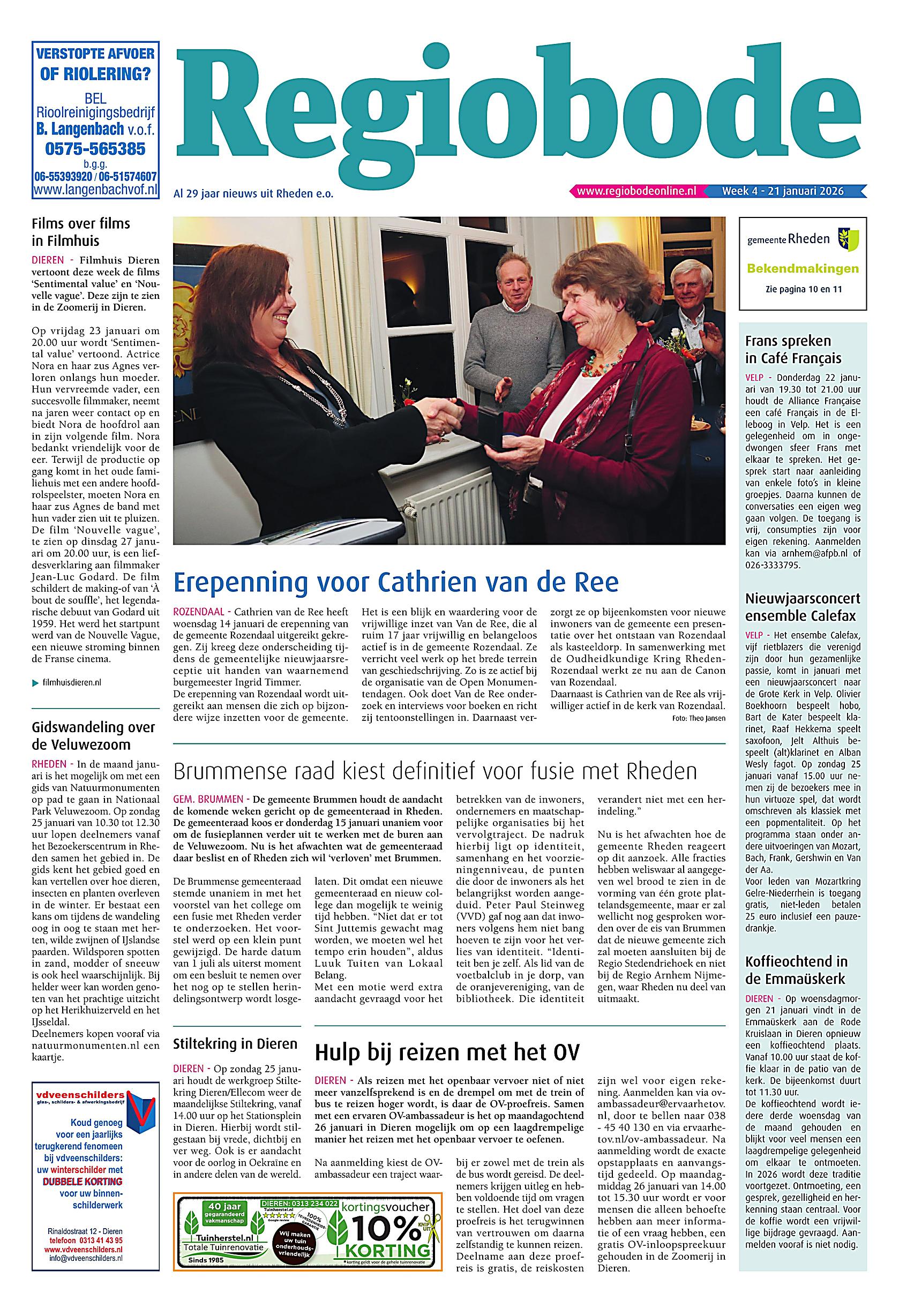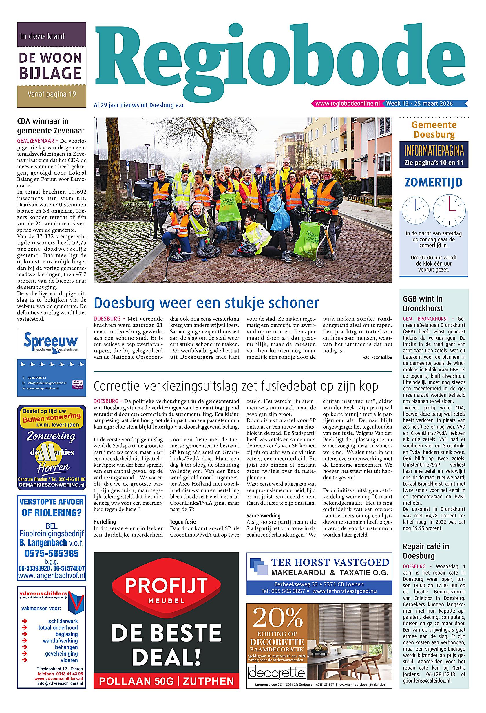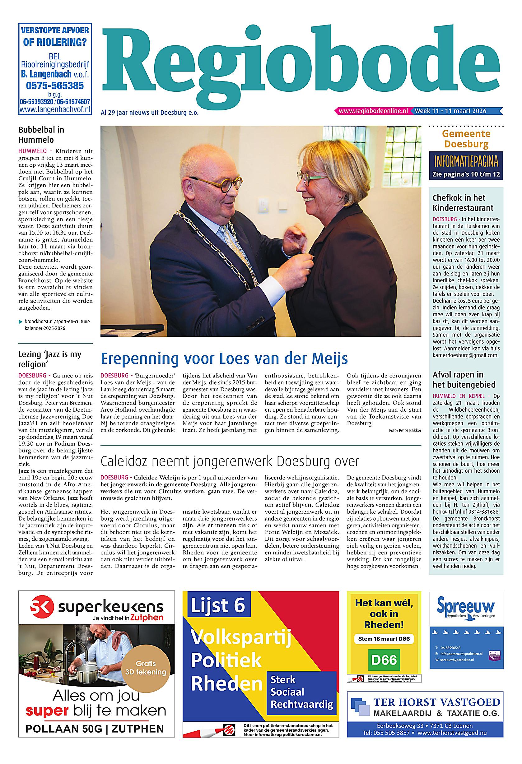 Welkom op het krantenarchief van Regiobode Beheer. Op deze plek zijn onze laatste uitgaven digitaal te lezen. Niet alleen zijn de redactionele bijdragen hier te zien, maar omdat complete uitgaven gedigitaliseerd worden, zijn ook alle advertenties te zien zoals ze in de gedrukte media zijn verschenen.
